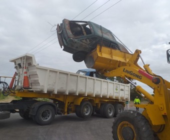 En una acción comandada por la Dirección de Tránsito y con la colaboración fundamental del Corralón municipal, se trabaja en extraer los autos abandonados en distintos puntos de la ciudad en pos de continuar con el ordenamiento y la limpieza de Villa Gesell.