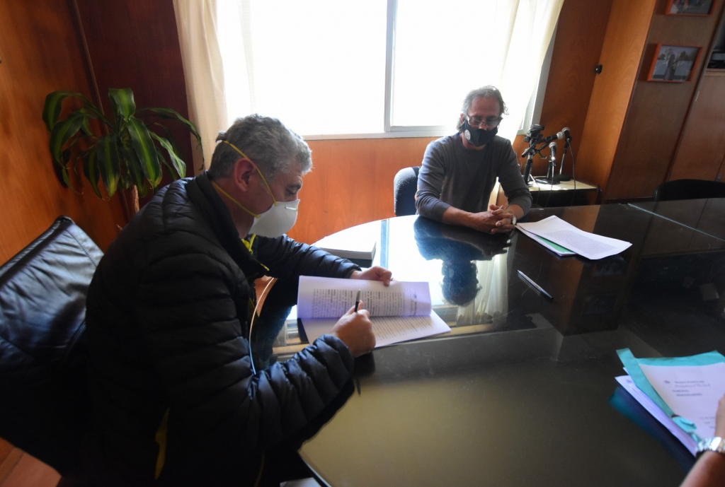 Esta mañana, el Intendente municipal, Gustavo Barrera, firmó el contrato con el adjudicatario de la licitación de carácter privado que se llevó a cabo durante la semana pasada que tuvo como objetivo adquirir la mano de obra y materiales para la instalación completa de aberturas exteriores de la obra de ampliación del Centro de Salud Sur.