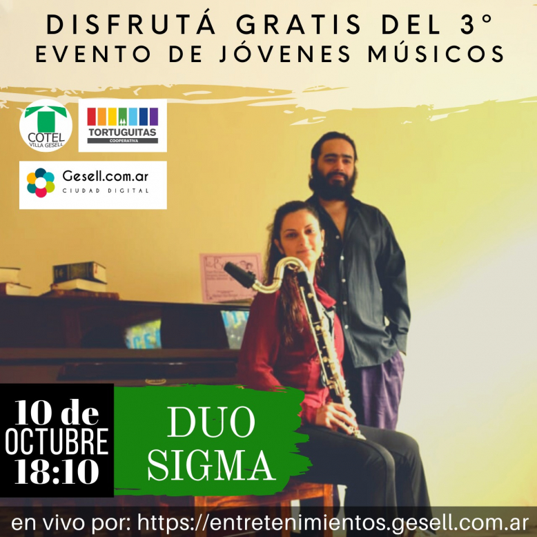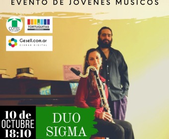 Este sábado a las 18.10 horas, será el turno del Dúo Sigma, compuesto por Matías Valentino y Elisabeth Cueli, quienes llevarán a cabo un recital de música clásica, jazz y tango. Su actuación será transmitida mediante el canal de YouTube de la Cooperativa https://www.youtube.com/channel/UCgiVwdvpLZyUk105V_ZFKOQ y la página de entretenimientos https://entretenimientos.gesell.com.ar/.