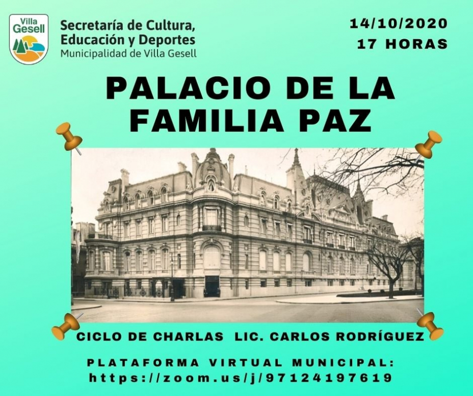 En esta última oportunidad, la charla estará orientada en el Palacio Paz, la residencia familiar de José Clemente Paz fundador del diario La Prensa. La actividad, coordinada por la Secretaría de Cultura, Educación y Deportes se realizará el miércoles 14 de octubre a las 17h por la plataforma virtual municipal: https://zoom.us/j/97124197619