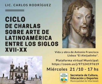 En la primera de las charlas, Rodríguez disertará acerca de la vida y obra de Antonio Francisco Lisboa “El Aleijadinho”.