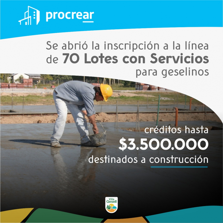 La línea Lotes con Servicios tiene como objetivo posibilitar el acceso a lotes con servicios en predios desarrollados por Procrear, destinados a la construcción de vivienda única, familiar y de ocupación permanente. En ese sentido, Villa Gesell tiene disponibles 70 lotes para la inscripción que abrió este martes 21 de octubre.