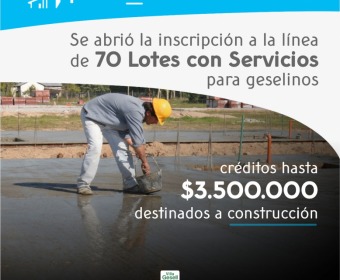 La inscripción para los créditos hipotecarios de la línea Lotes con Servicios está disponible en: argentina.gob.ar/procrear.