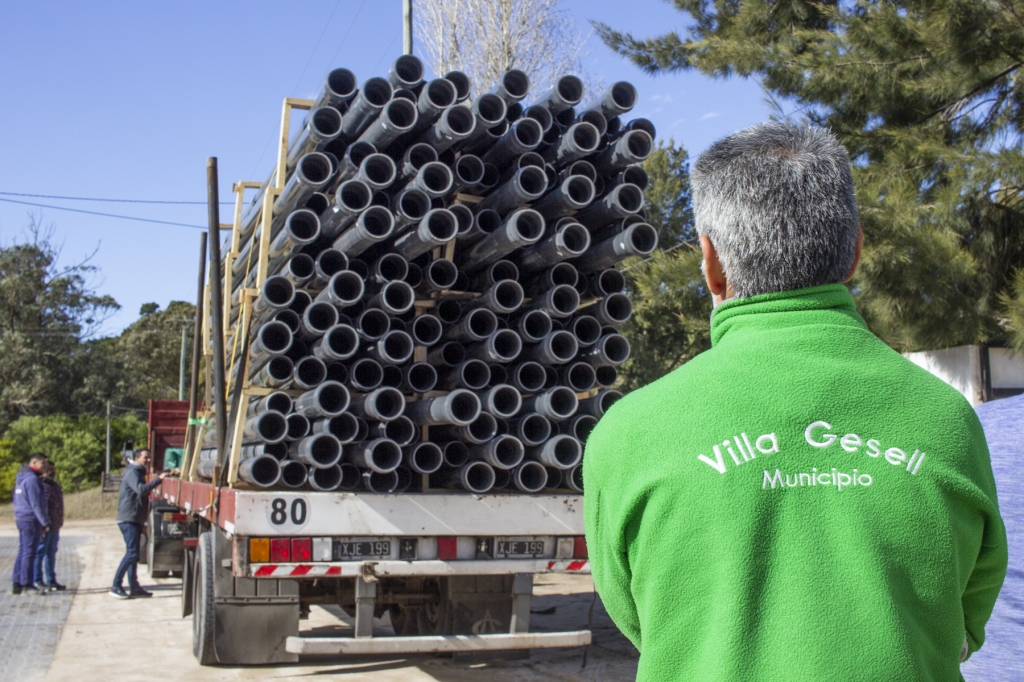El primer camión con materiales y equipamiento para el tendido de agua potable en las localidades de Mar de las Pampas, Las Gaviotas y Mar Azul, arribó esta mañana a la ciudad, para dar inicio a la primera etapa de la obra que brindará una mejor calidad de vida a los vecinos y las vecinas en el sur del Partido de Villa Gesell.