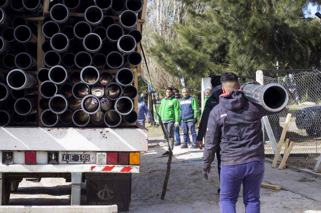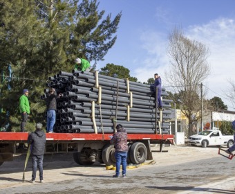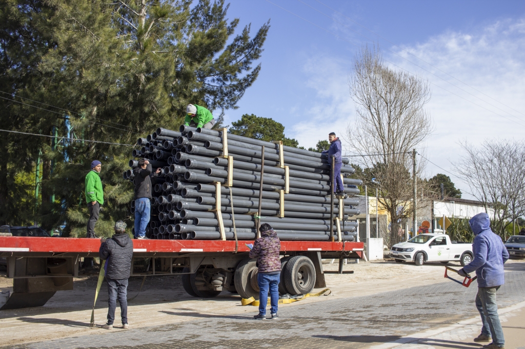 Se trata del primer camión de materiales, con caños y equipamiento, que recibió el equipo de la Dirección de Obras Sanitarias, para la etapa inicial de la obra gestionada por el Intendente Gustavo Barrera ante el Ministerio de Infraestructura y Servicios Públicos de la Provincia, a cargo de Leonardo Nardini, con una inversión que supera los 55 millones de pesos.