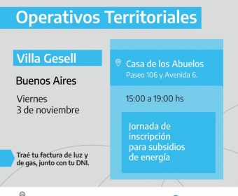 En este evento, se invita a los vecinos a presentar su factura de luz y gas junto con su DNI, con el objetivo de promover la inscripción a los subsidios de energía. Esta iniciativa es una colaboración entre la Secretaría de Energía del Ministerio de Economía de la Nación, la Subsecretaría de Energía de la Provincia de Buenos Aires, el Organismo de Control de Energía Eléctrica de la Provincia de Buenos Aires (OCEBA) y la Municipalidad de Villa Gesell.