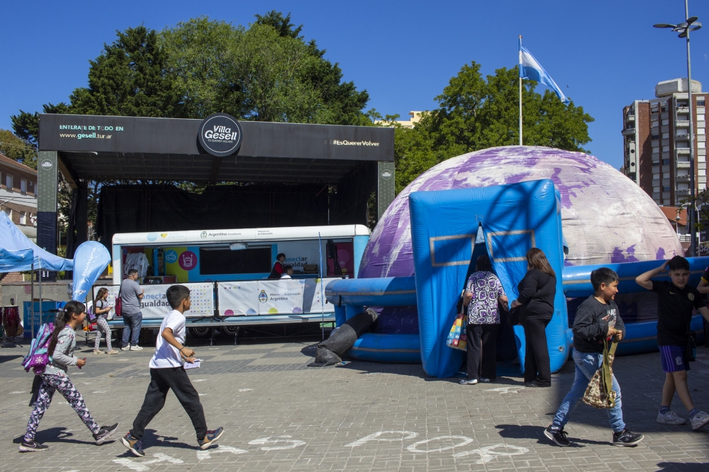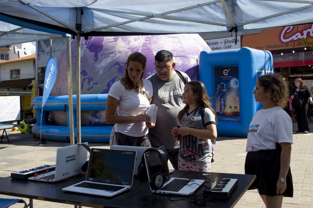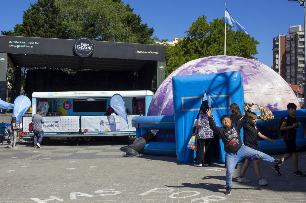 En esta oportunidad, el Estado en tu barrio llegó a Villa Gesell junto al programa Conectar Igualdad, que ofrece múltiples propuestas para que chicos, chicas y grandes aprendan jugando. El martes se realizó la primera jornada en la Plaza Primera Junta y hoy miércoles será la segunda, en el mismo espacio, de 13 a 17 horas.