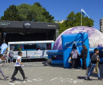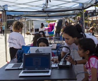 Hay un espacio con instrumentos musicales y posibilidad de grabación, otro para hacer arte digital, hay juegos para programar, un sector de videojuegos, un planetario y mucho más.