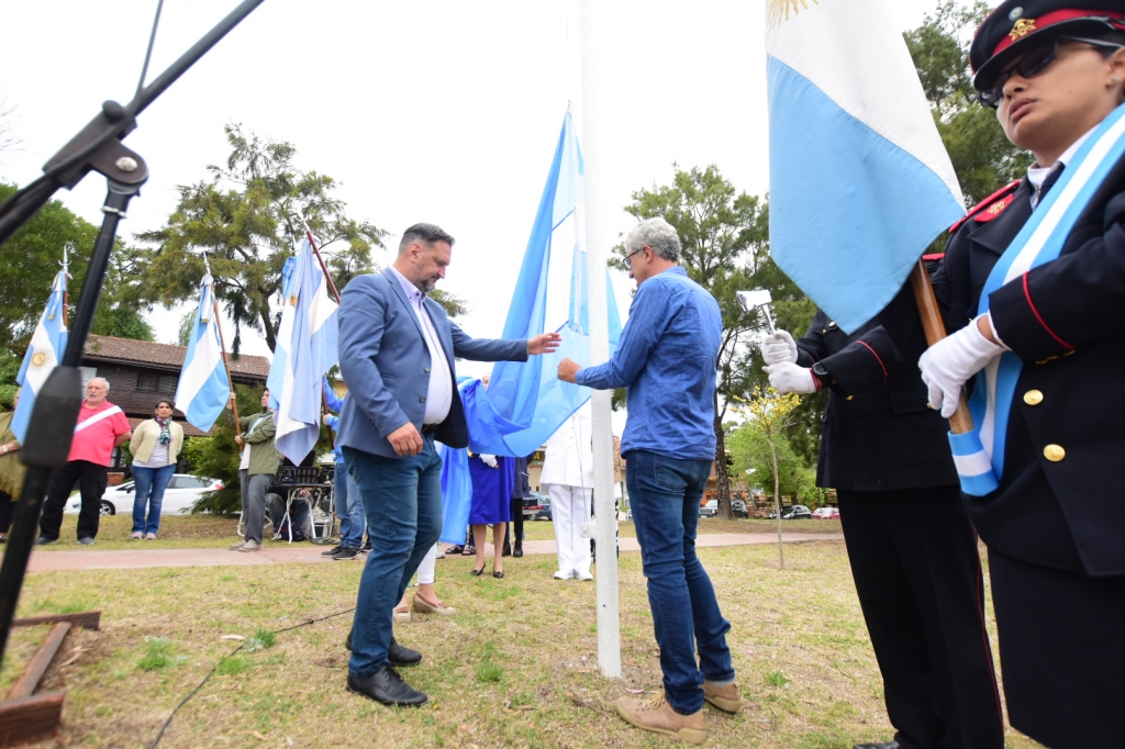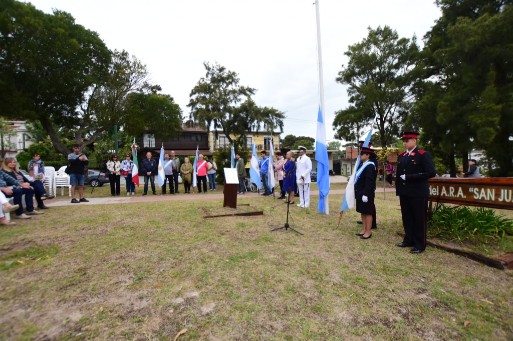 Acompañaron el acto el ex concejal (mandato cumplido) Carlos Villoldo, quien fuera el impulsor de la inauguración de la plazoleta en homenaje a los héroes del submarino, y el Cura Párroco de Villa Gesell, Pablo Bosisio.
