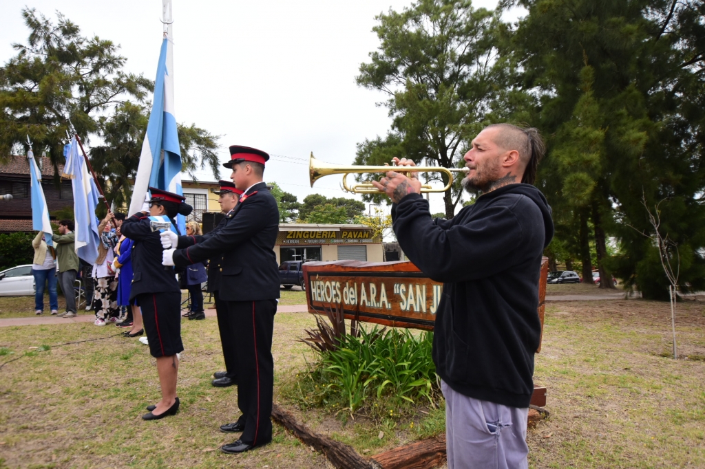 En el evento estuvo presente el Intendente Municipal, Gustavo Barrera, quien compartió algunas palabras: “Gracias por la presencia de todos ustedes. 44 compañeros argentinos perdieron su vida en el mar, mientras cumplían la misión de cuidar nuestra soberanía, al igual que nuestros héroes de Malvinas. Recordarlos es recordar nuestra historia, cómo se forjó e inició. Porque al igual que los héroes de Malvinas, ellos han perdido su vida en defensa de nuestra patria, en la formación de la misma, por eso son héroes. Los tenemos que recordar y acompañar a las familias para que, de una vez por todas, se sepa la verdad de lo que pasó en el submarino, por qué sucedió. Esto está muy vinculado con un proceso que estamos viviendo actualmente, en el cual parte de la política no cree en la soberanía, en nuestros valores, en el camino que tenemos que recorrer como pueblo (...). Si queremos crear una patria justa, libre y soberana, tenemos que seguir luchando por la verdad y la justicia, defender nuestros valores y seguir formándonos para no perder nuestra identidad”.