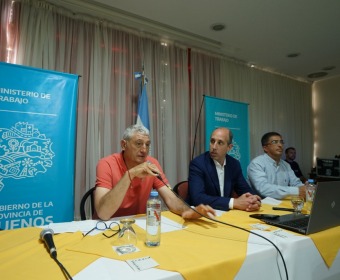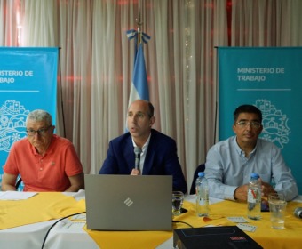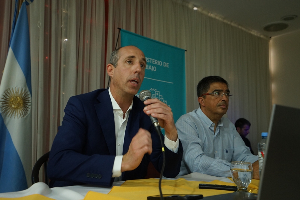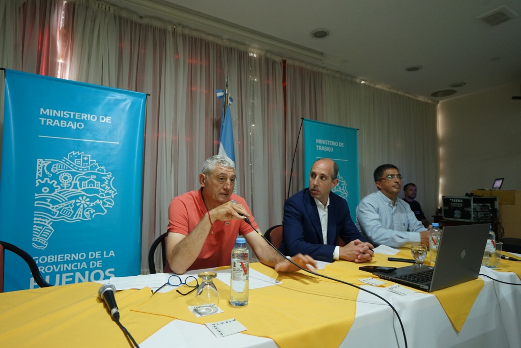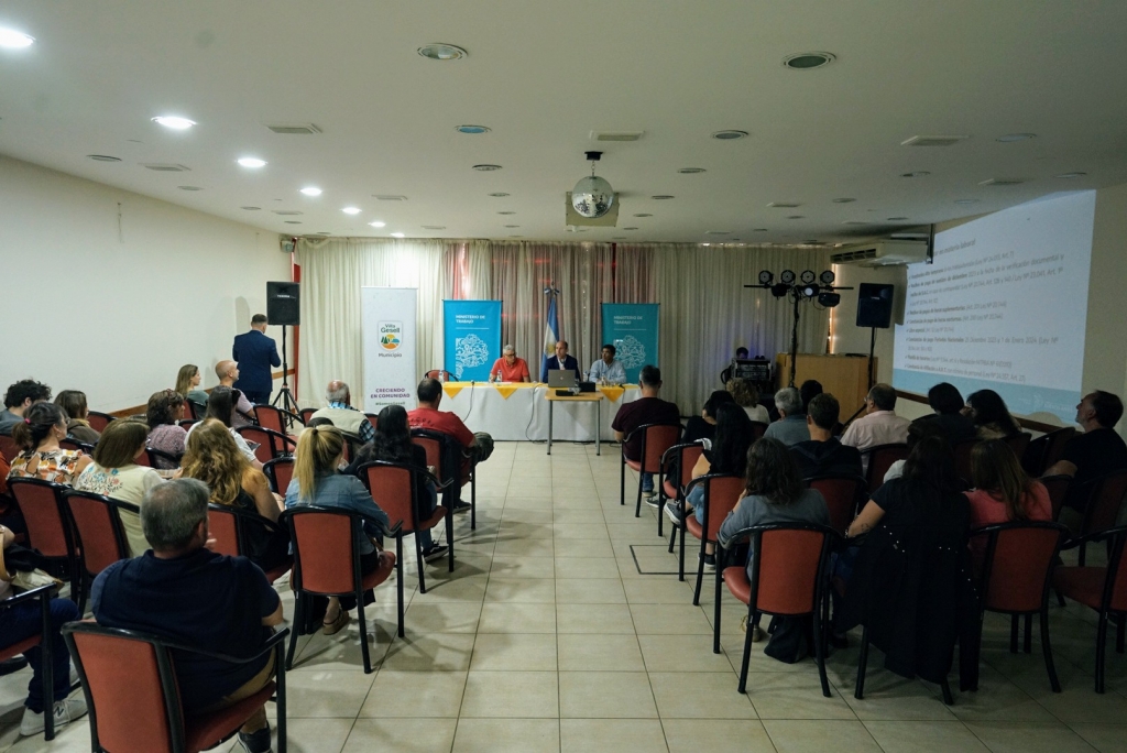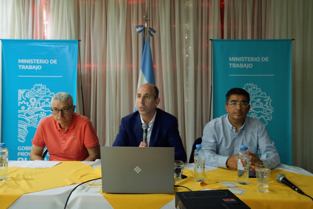 La charla tuvo lugar en el complejo Parque Bonito y contó con la participación del Intendente Gustavo Barrera, el subsecretario de Inspecciones del Trabajo, Mariano Salomón, y el delegado regional, Gabriel Cisneros.