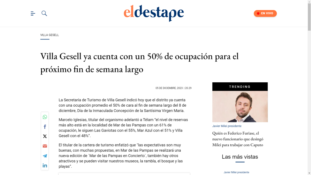 Algunos de los medios que se sumaron a la promoción de nuestra ciudad como un gran destino turístico fueron El Destape, Télam y la Radio Am 780 Cadena Patagonia.