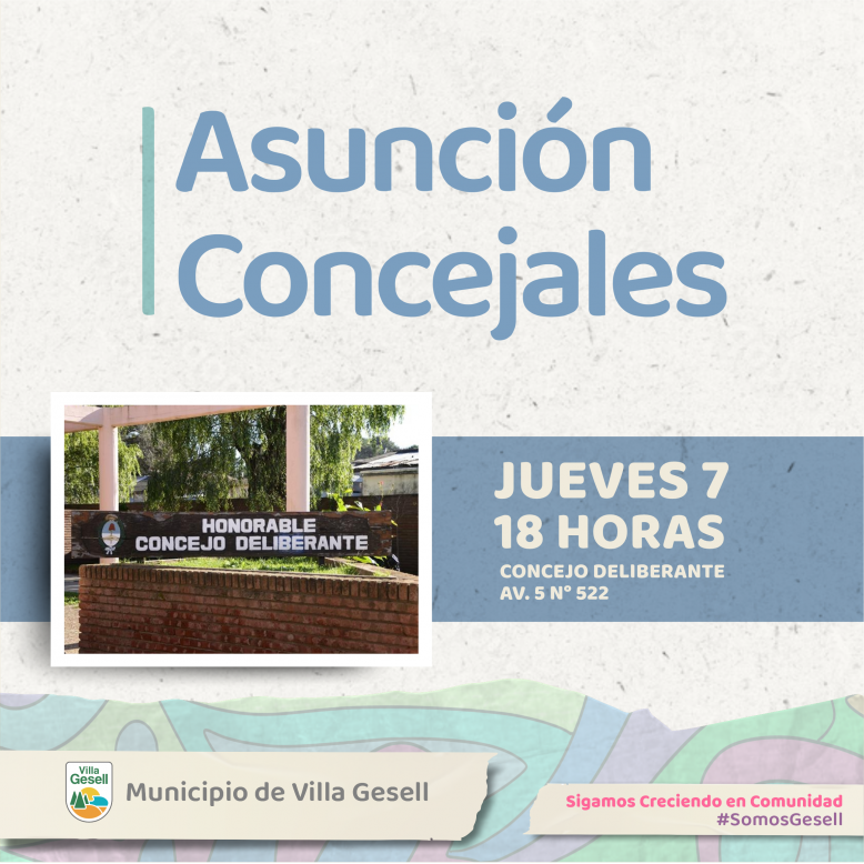 En ese sentido, los concejales electos el pasado 22 de octubre tomarán su lugar en el HCD a partir de las 18 horas en Avenida 5 N° 522. El evento es abierto a la comunidad e invita a fortalecer y reivindicar la democracia.
