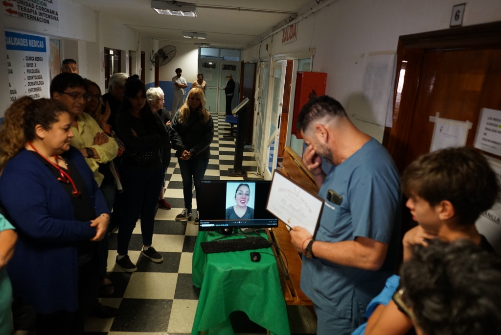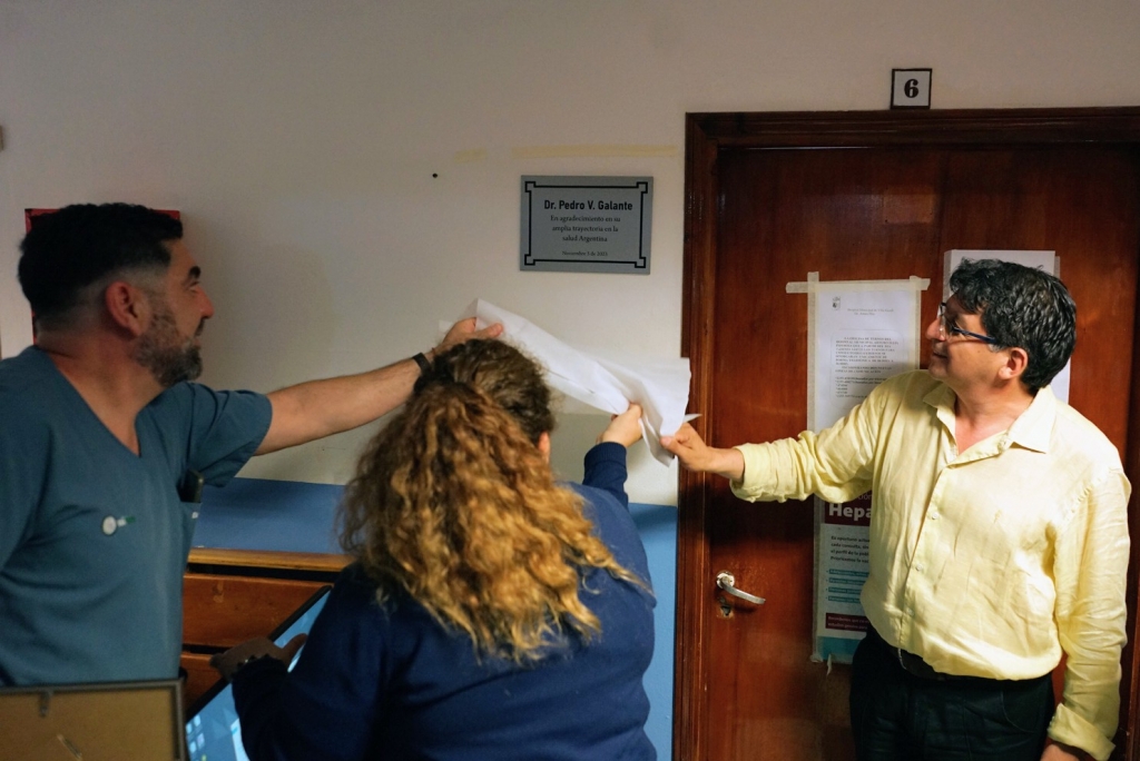 Por último, se descubrió una placa en homenaje a otro reconocido médico de la ciudad: el Dr. Pedro Vicente Galante, que se desempeña desde el 2003 en el Hospital. Las personas presentes celebraron el reconocimiento y también llegaron los saludos de allegados al doctor, quien se mostró emocionado y sorprendido.