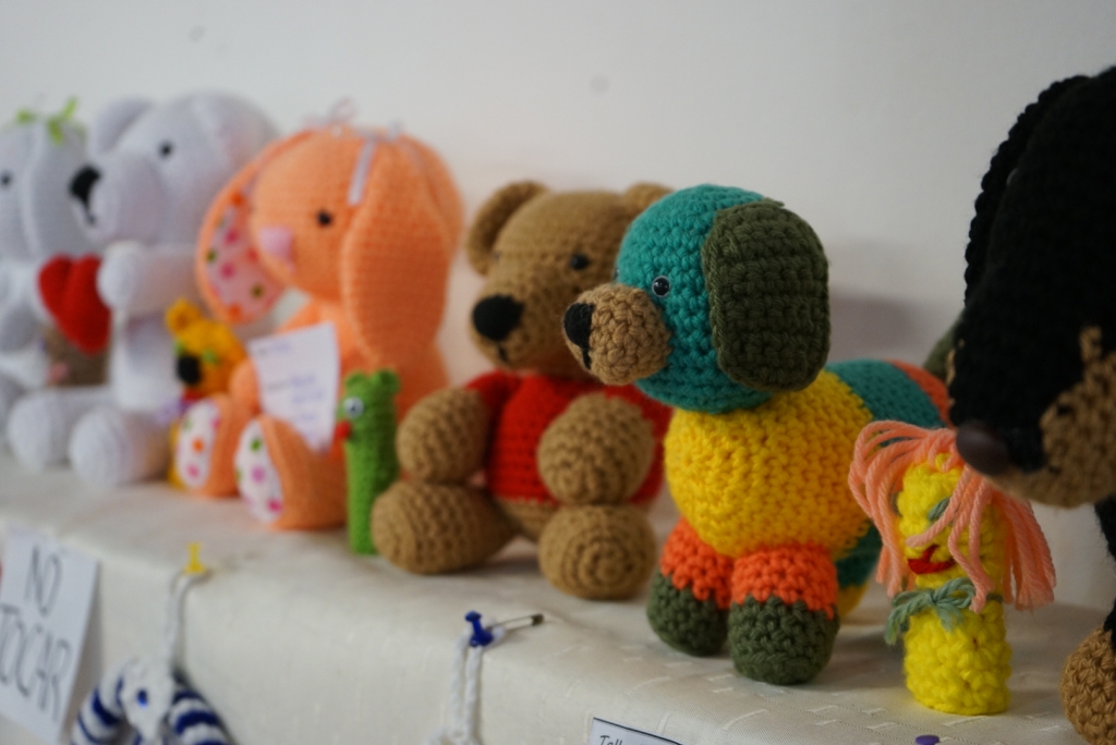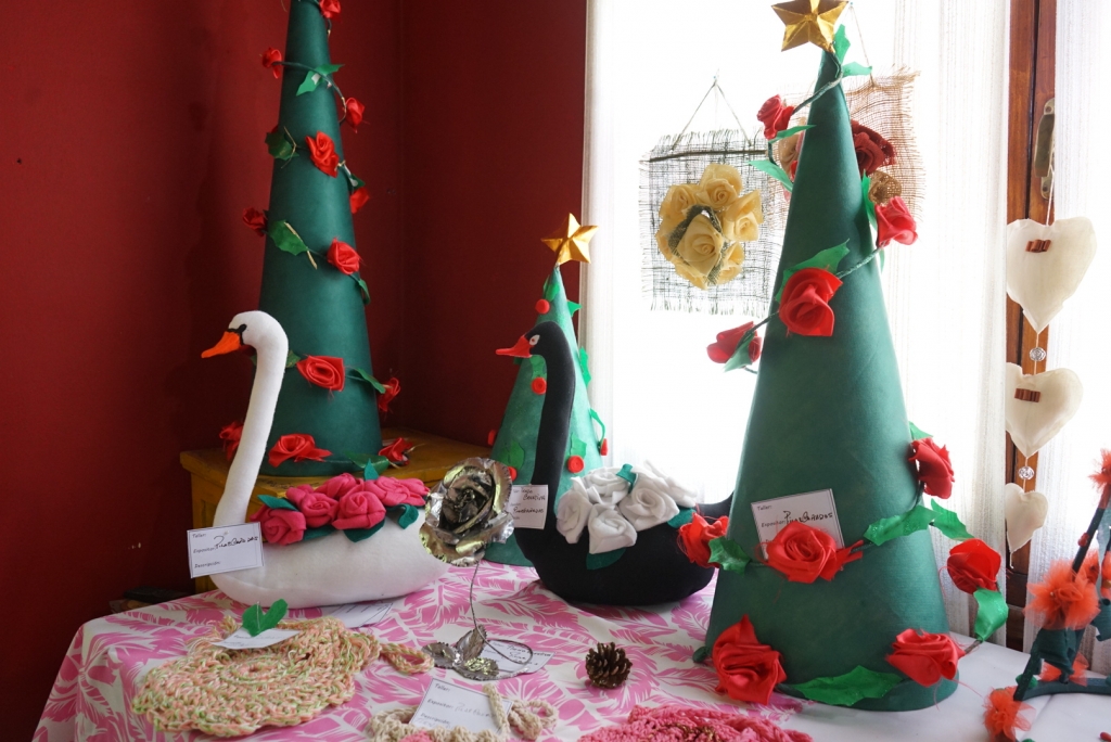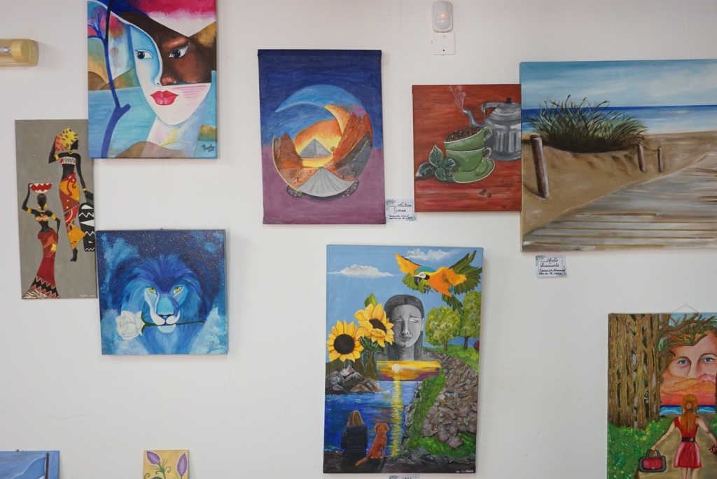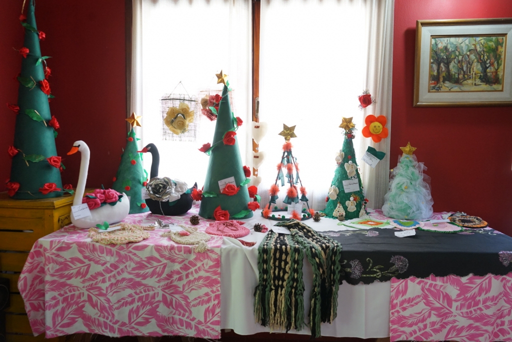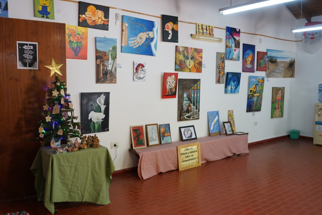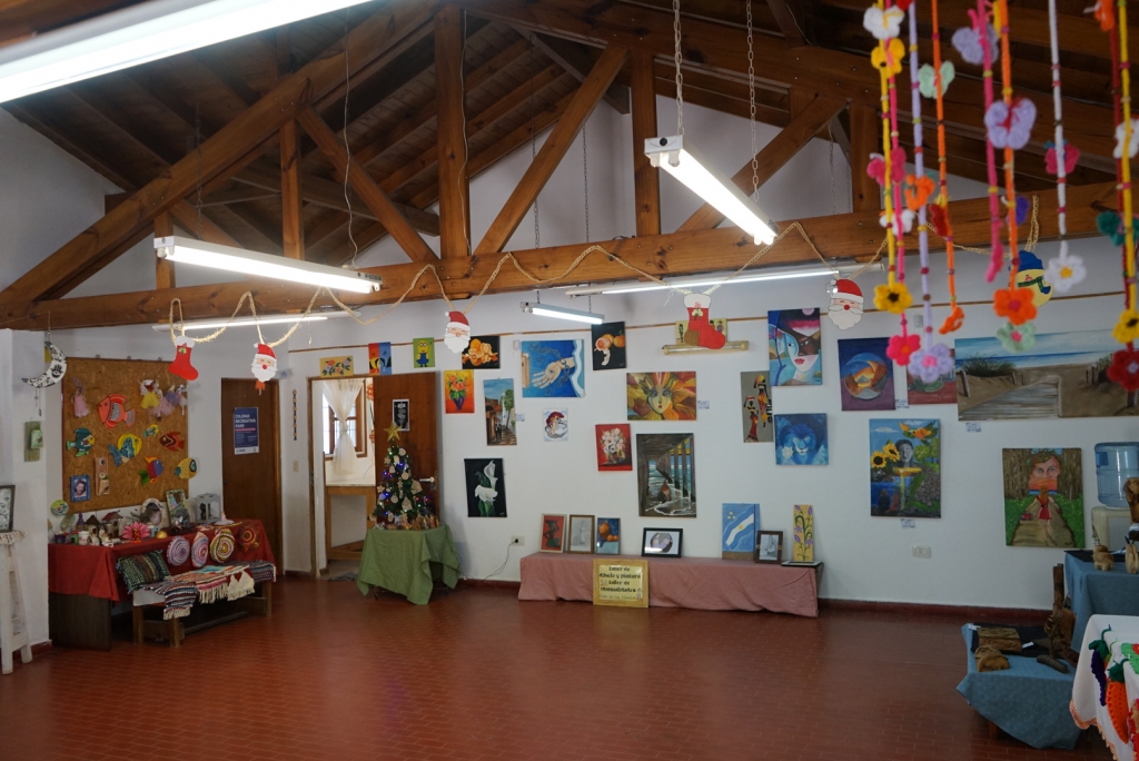 La muestra exhibe una variada gama de expresiones artísticas y creativas, destacando obras de dibujo y pintura, tejido, mandalas y tapices, creaciones de la tienda creativa quienes realizaron una hermosa decoración navideña en todo el espacio, manualidades y tallados.
