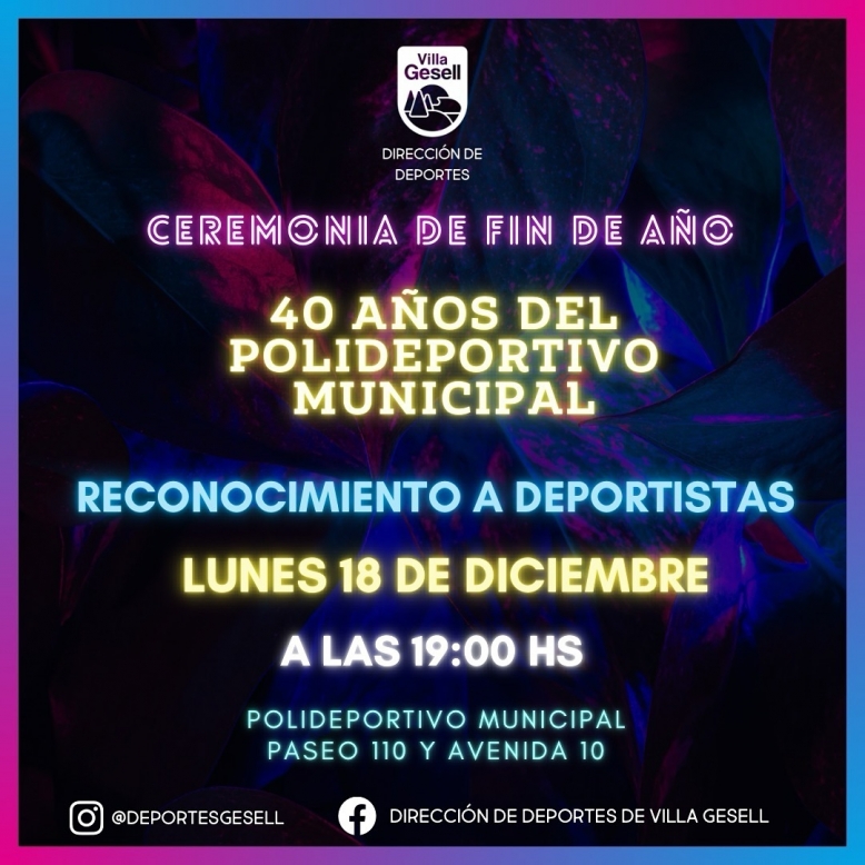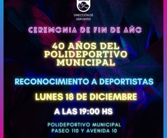 Durante la ceremonia de fin de año se otorgarán reconocimientos a deportistas de las diferentes disciplinas deportivas que se practican en el Polideportivo Municipal, de las instituciones geselinas y a los y las de mayor trayectoria que estuvieron representando a la ciudad en las diversas competencias provinciales, nacionales e internacionales.