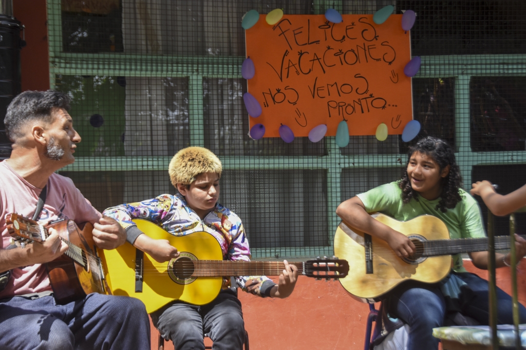 La jornada se inició con un animado desayuno compartido, seguido de un recorrido por los alrededores del espacio donde se expusieron muestras y presentaciones que reflejaron el trabajo realizado a lo largo del año. Posteriormente, los pequeños y pequeñas disfrutaron de una presentación recreativa musical dirigida por los talleristas Claudio Arenas y Nahuel Porras. En este espacio, se entrelazaron cantos, bailes y la interpretación de instrumentos musicales, despertando la alegría y la participación de todos.