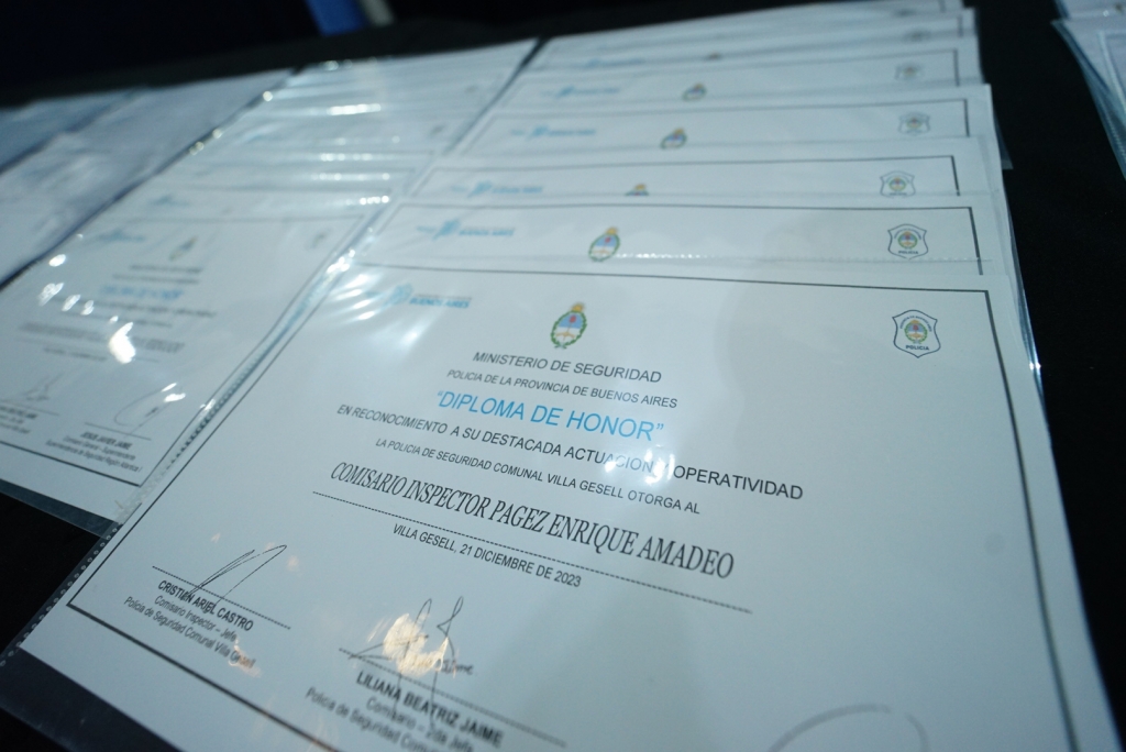 “El camino es trabajar en conjunto” expresó el intendente: “tenemos que trabajar mancomunadamente, reunidos, porque realmente cuando es así los resultados se ven”. Además, destacó que continúan los trabajos en las 16 viviendas construidas con financiamiento de la Caja de Retiros de las Policías de la Provincia: “Las vamos a terminar cuanto antes”. Por su parte, el secretario de Seguridad, Mauricio Andersen, que destacó el crecimiento de la estructura de Villa Gesell; “Hemos venido creciendo día a día, gracias a las misiones que han realizado, de crear más dependencias policiales para nuestra ciudad y para el vecino”, y añadió: “Dentro de ese uniforme hay un vecino, un humano, y el que está en la calle o en el lugar, es otro vecino, otra familia. Así que a seguir trabajando en paz y dar todo lo mejor de lo que sé que ustedes están preparados”.