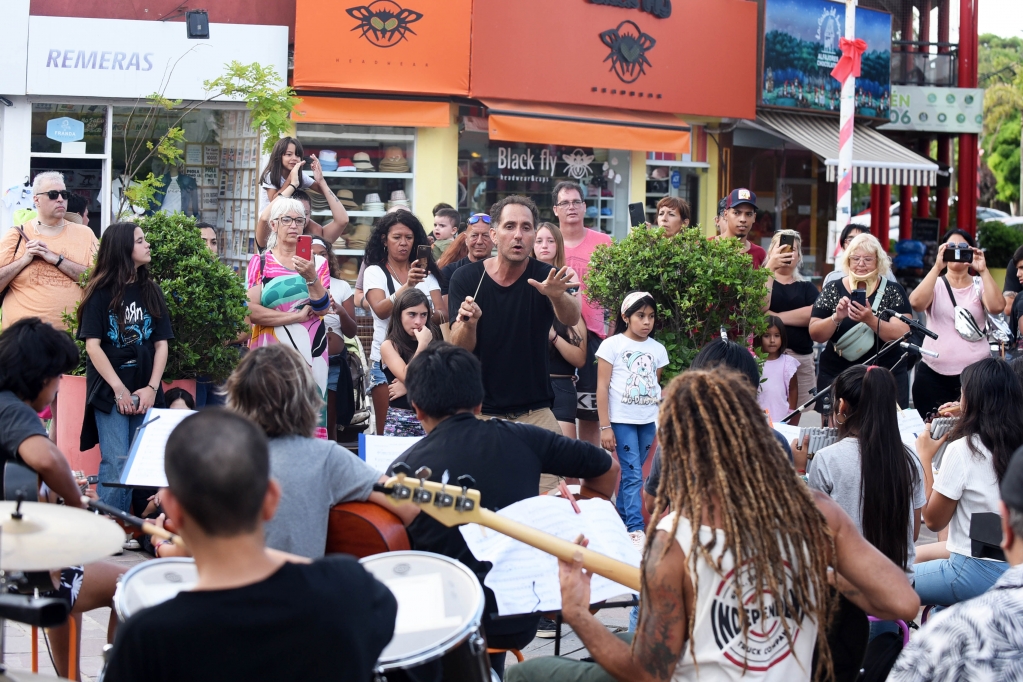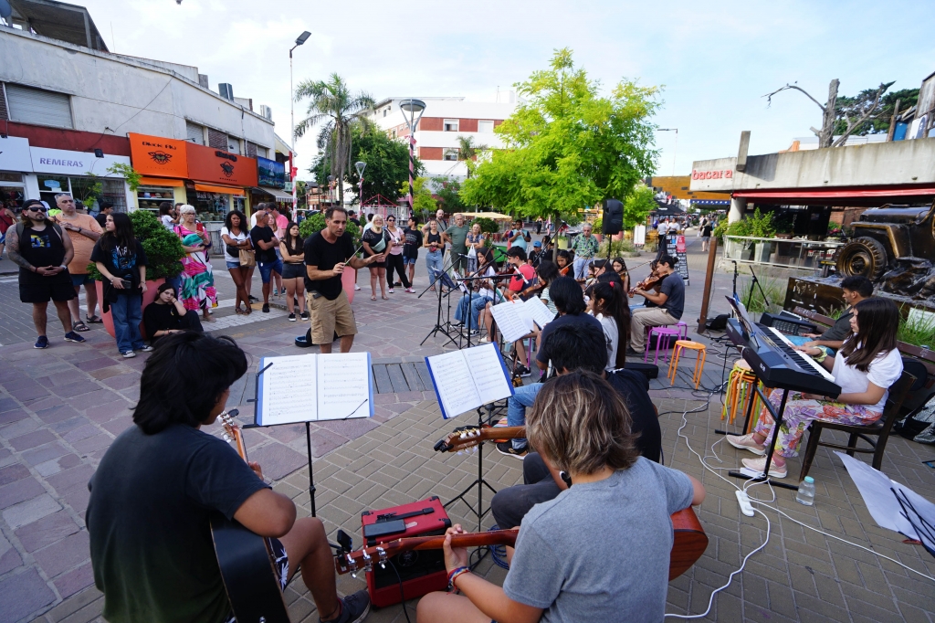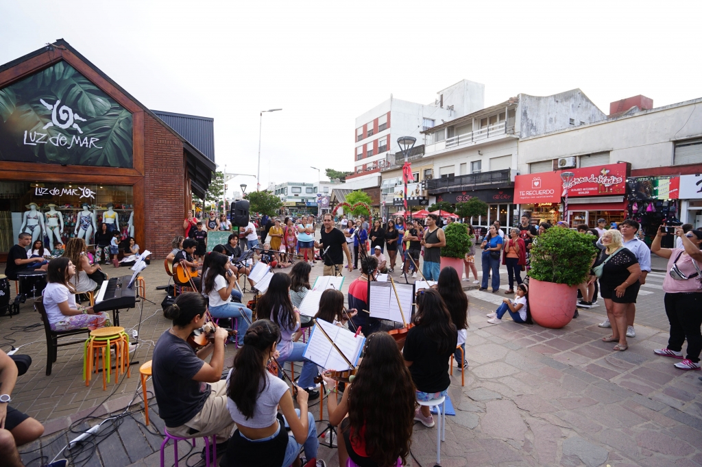 La Escuela de Música de Villa Gesell (EMO) celebró su primer show en la peatonal de la ciudad, cautivando a turistas y lugareños con la actuación de la Orquesta Infanto Juvenil junto a sus coordinadores.