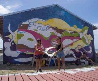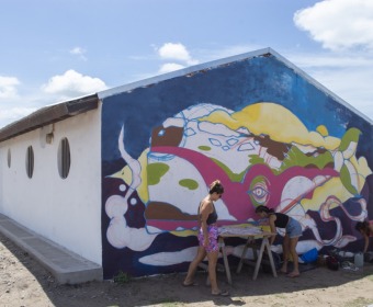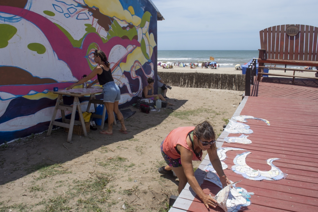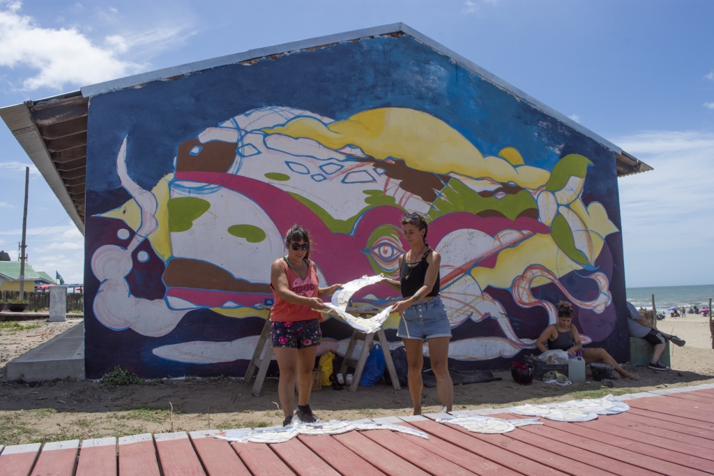 Las talentosas artistas Lucía Sicuso, Delfina Martín y Valeria Maidana están fusionando técnicas innovadoras para dar vida a este mural, utilizando una combinación de mosaicos, vidrios, espejos y diversas técnicas pictóricas como el mural, stencil, aerosol, paste up y materiales reciclados.