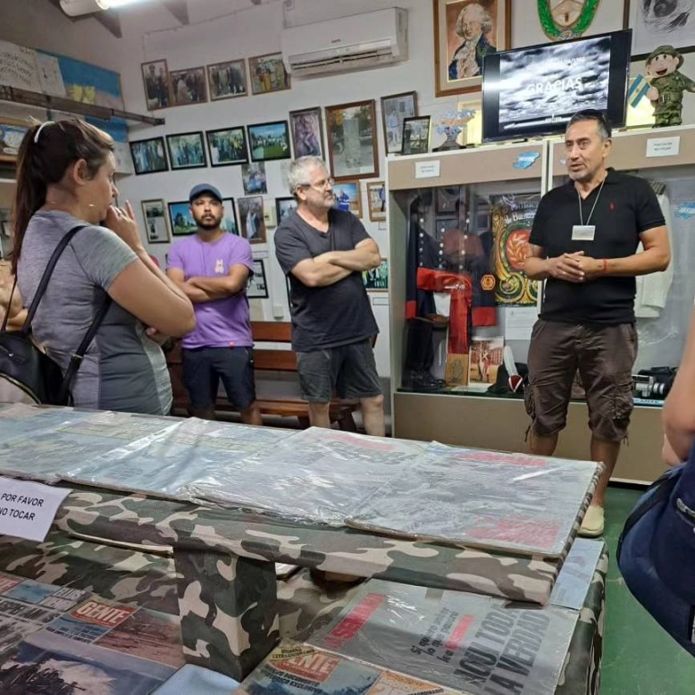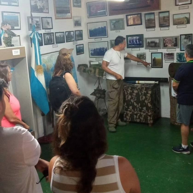 En un recorrido por el Bosque Fundacional, vecinos y turistas pueden descubrir el Museo y Archivo Histórico Municipal del Veterano de Guerra de Malvinas “Livio Alberto Cossiani”. Allí, los veteranos Quique Rodríguez y Roberto Marrazo comparten con la comunidad la historia desde su experiencia.