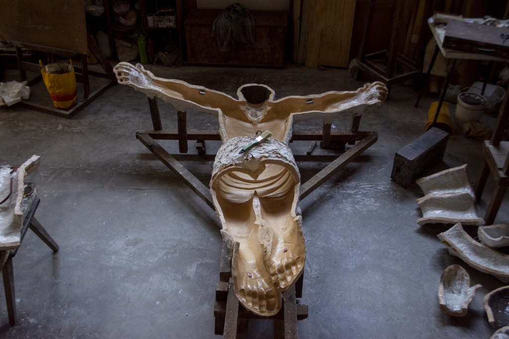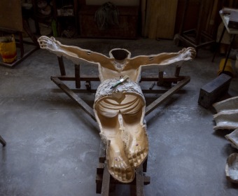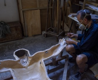 El autor está trabajando actualmente en la creación de un Cristo que irá en el interior del Santuario Santiago Apóstol. Esta escultura está siendo realizada con resina, un material que permite incorporar color, por lo que será muy diferente a las anteriores.