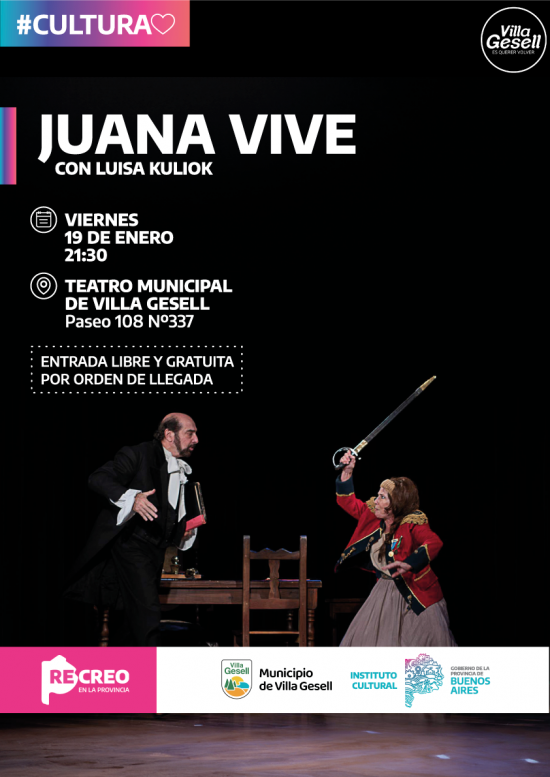 "Juana Vive" es una adaptación teatral basada en el “Proceso a Juana Azurduy”, escrito por Andrés Lizarraga. La propuesta lleva a escena un encuentro entre la gran Libertadora y un abogado de oficio designado por el Poder momentos antes de su comparecencia ante el Tribunal para ser juzgada.