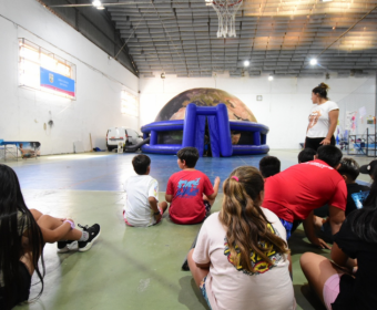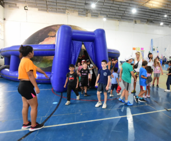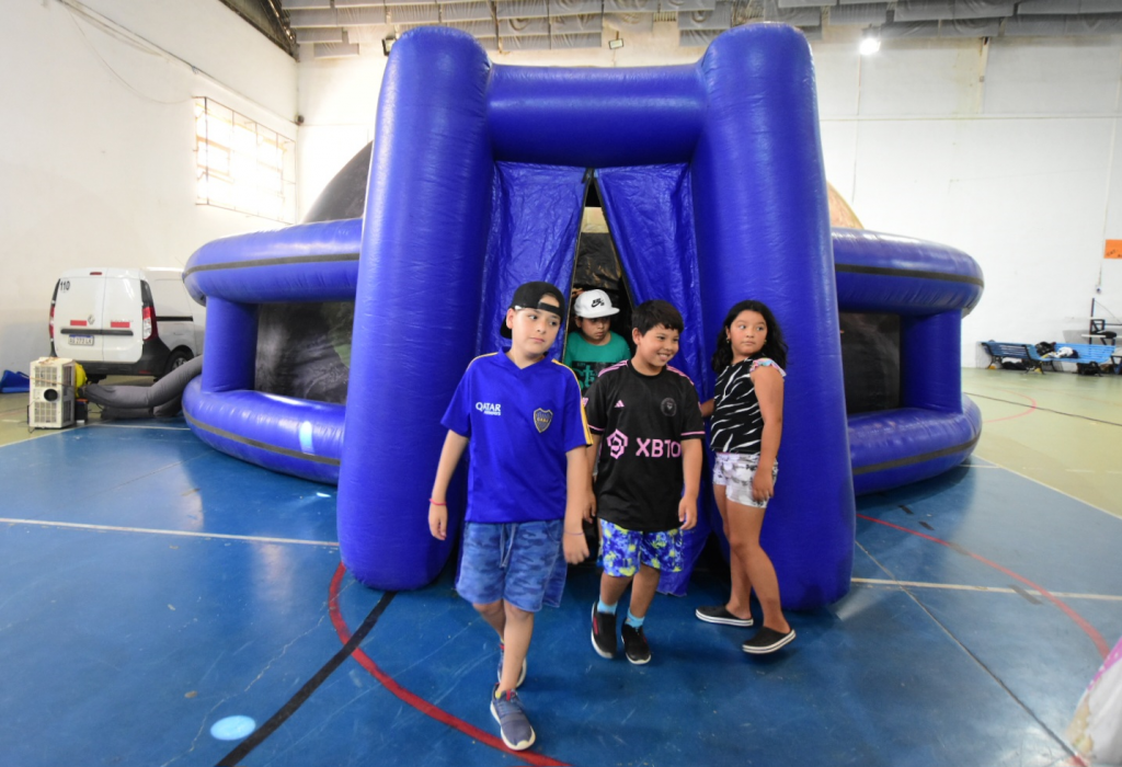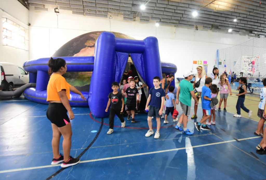 En esta ocasión, el equipo de coordinadores y profesionales se unió a los niños y niñas para vivir una experiencia educativa única sobre los dinosaurios a través del Planetario itinerante. Este Domo móvil ofrece una experiencia inmersiva en formato 360º, sumergiendo a los participantes en el fascinante mundo de los dinosaurios.