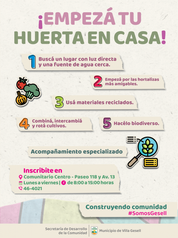 ¡Comenzá tu cultivo con acompañamiento especializado! Inscribite de lunes a viernes, de 8 a 15 horas, en el Centro Comunitario Centro, ubicado en Av. 13 y Paseo 118. Para más información, comunicate al teléfono 464021. ¡Sumate a esta experiencia única y transformá tu hogar en un oasis de frescura y vitalidad!