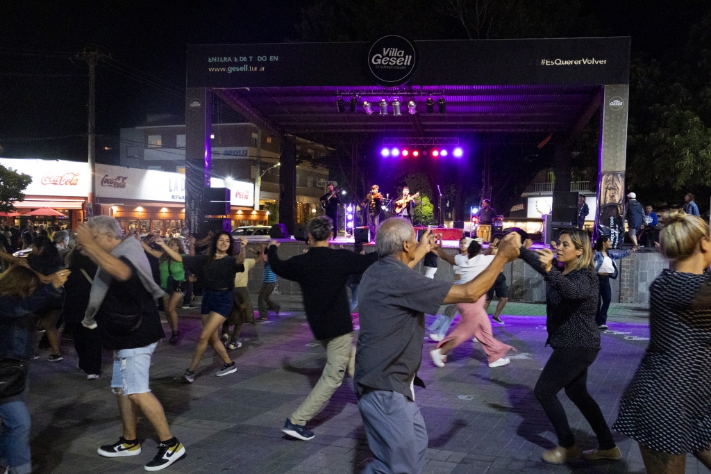 Con una plaza llena de turistas, vecinos y vecinas, las bandas musicales “Hermanos Farías”, “Ariel Zurdo y ensamble”, Sebastián Piñero, “A media voz”, Saúl Andrada y su grupo y “Tu presencia” llenaron de música el centro geselino, desde la Av. 3 y Paseo 104.