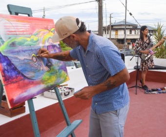 En esta oportunidad, la música Laila Farinola estuvo acompañada por Facundo Ferreira en la jornada, que contó además con una exposición de artistas locales y pintura en vivo, a cargo del director de Promoción de las Artes, Hugo Talou.
