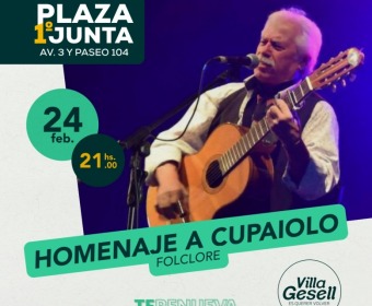 El sábado, se llevará a cabo un emotivo homenaje al histórico folklorista geselino Juan Carlos Cupaiolo, con la participación de destacadas agrupaciones de baile, como El Arenal, Los Ñaupa, La Flor Azul, Crisol, Dejando Herencia, Alma Criolla y Dejando Huella. Además, reconocidos cantores como Cachito Ludueña, Miguel Reynoso, María Velázquez Fiorillo, Sebastiám Piñero, Luis Monserrat, Marcelo Giulani, Hermanos Farías, Héctor Corvalán, Mucho Circo, José Nuñez y Alejandro de la Cruz se sumarán a este tributo.