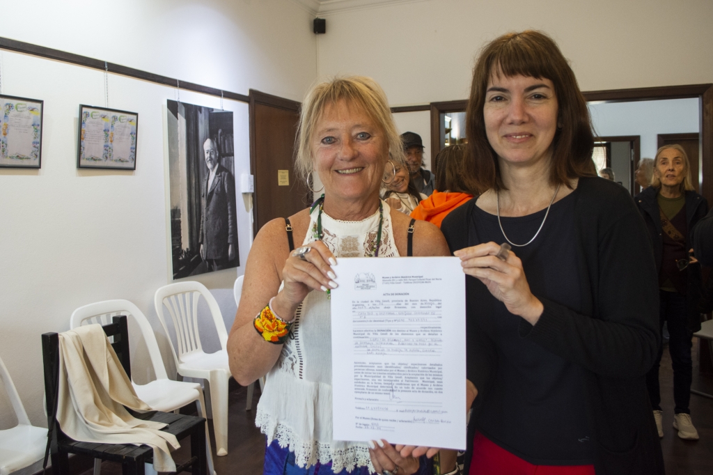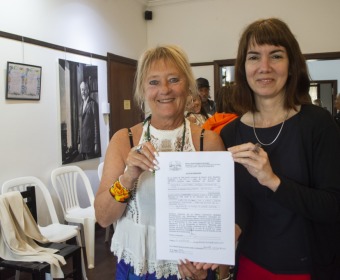 Claudia Kolaja entregó un ejemplar que se incorporará a la Biblioteca del Museo y Archivo Histórico Municipal.