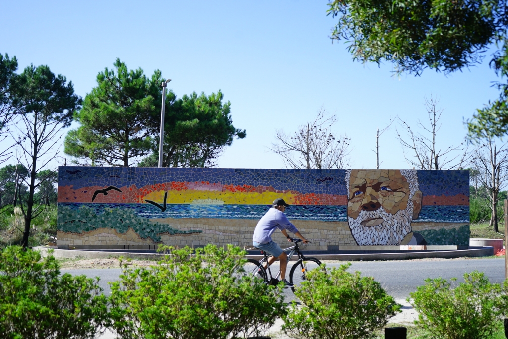 La temática del mural es un amanecer en las hermosas playas geselinas, con la figura de don Carlos Gesell observando el horizonte. Esta obra no solo embellece el nuevo acceso norte de nuestra ciudad, sino que también rinde un sentido homenaje al fundador de Villa Gesell, mostrando nuestra identidad, la belleza de nuestros paisajes y el talento de nuestros artistas a todos aquellos que llegan a nuestra comunidad.