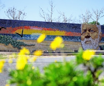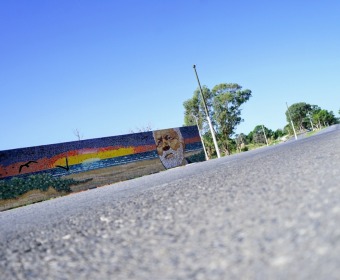 Este mural representa una verdadera hazaña artística, ya que fue completado en tan solo tres intensos meses de trabajo. Durante este tiempo, la artista , junto a su equipo, enfrentó diversos climas y desafíos, utilizando cerámicos, azulejos y vidrio cortados a mano para crear una impresionante obra que ahora adorna el portal de ingreso a nuestra ciudad.