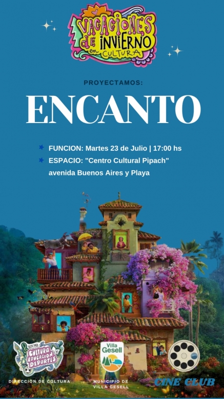 La nueva proyección de la que podrán disfrutar los niños y niñas este martes será "Encanto", a las 17 horas en el Centro Cultural Pipach ubicado en Avenida Buenos Aires y Playa.