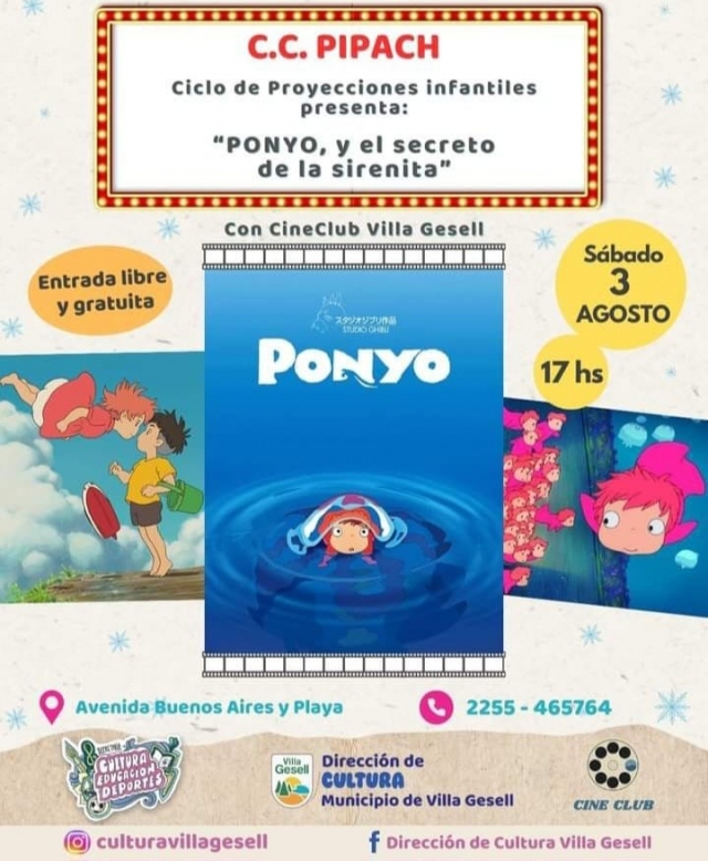 En el marco del ciclo de proyecciones infantiles, se presentará “Ponyo y el secreto de la sirenita” con entrada libre y gratuita. La cita será el sábado 3 de agosto, a las 19 horas, en el Centro Cultural Pipach.