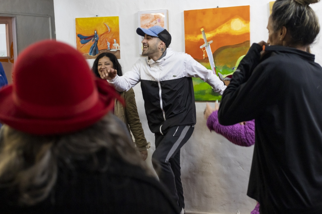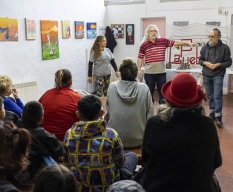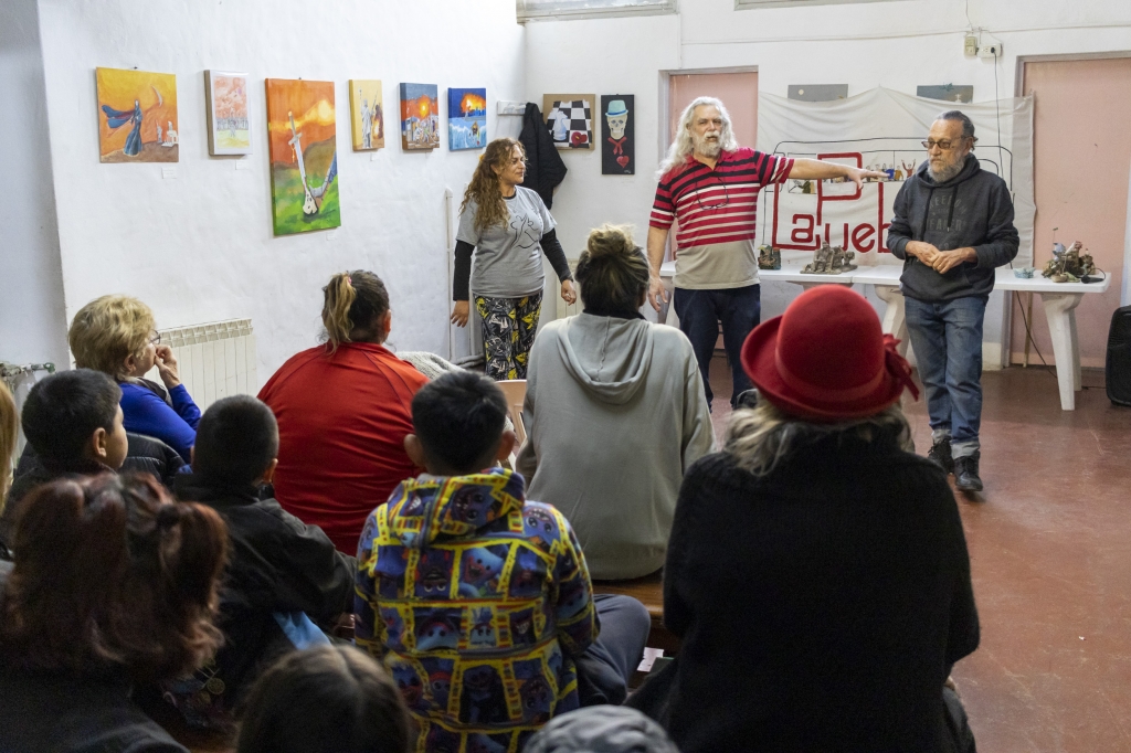 El colectivo de artistas "La Pueblada" fue convocado por la Secretaría de Desarrollo de la Comunidad a través de los equipos psicosociales de cada Comunitario. Esta propuesta pasará a formar parte de las actividades que ofrecen los Centros Comunitarios para la comunidad.