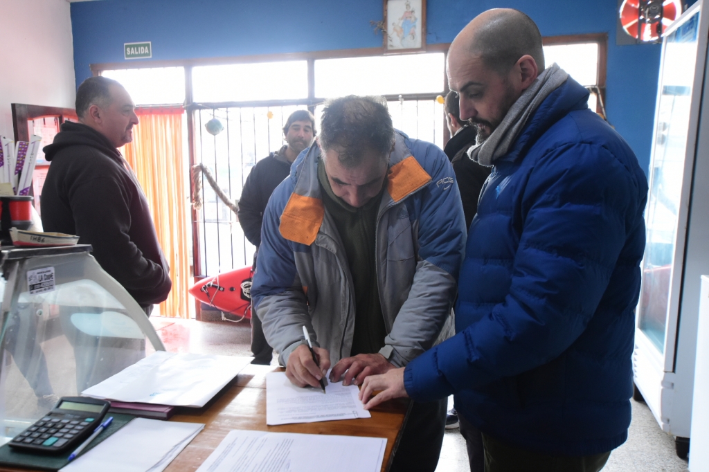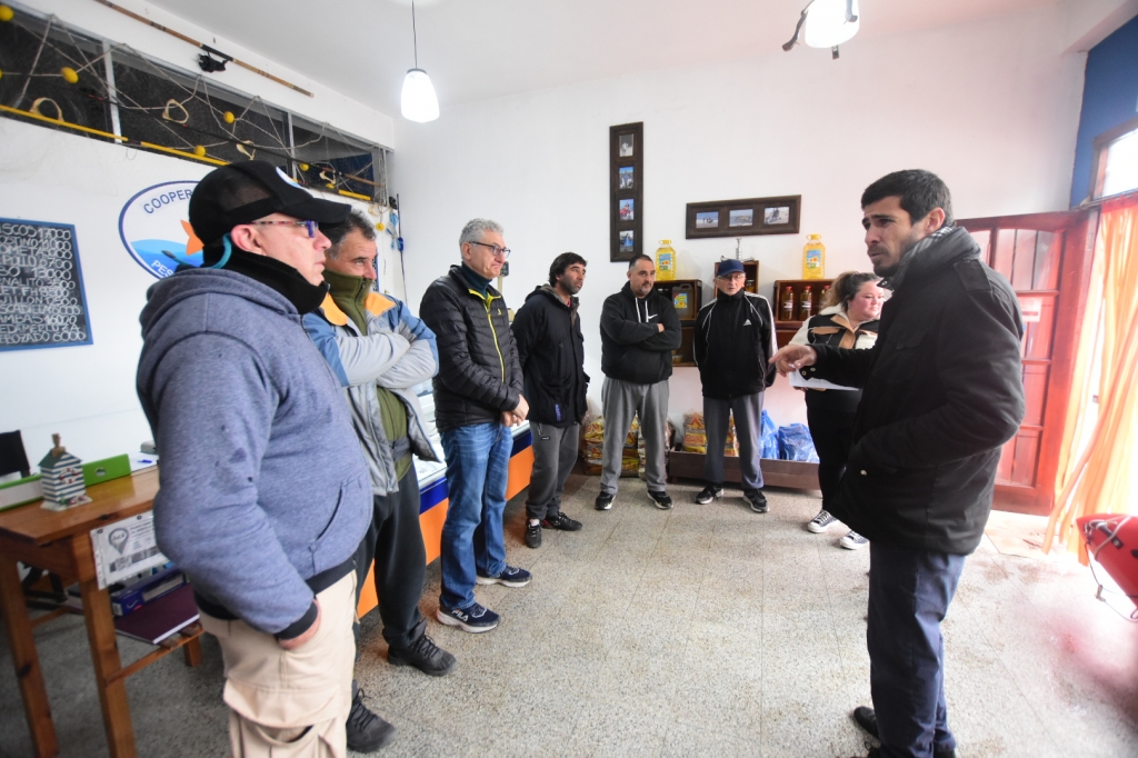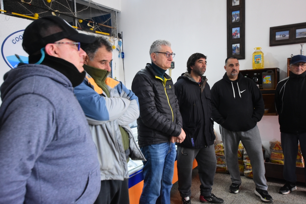 El encuentro contó con la participación del Intendente Gustavo Barrera, el director Provincial de Pesca, Matias Nicolisi, el director de Actividades Pesqueras y Acuicultura, Gustavo Anton, integrantes de la Cooperativa y los capitanes de las embarcaciones.