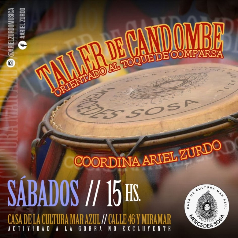 15.00 horas: Taller de candombe orientado al toque en comparsa.