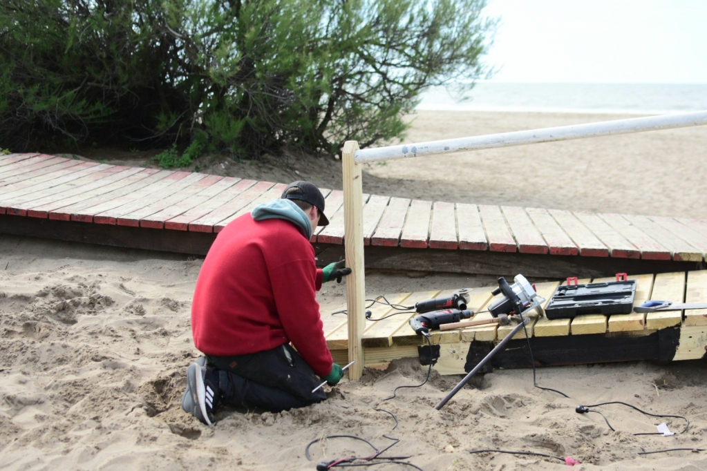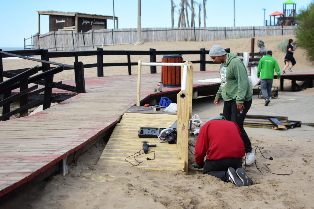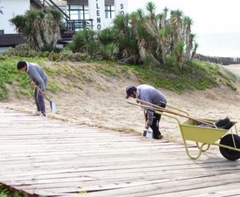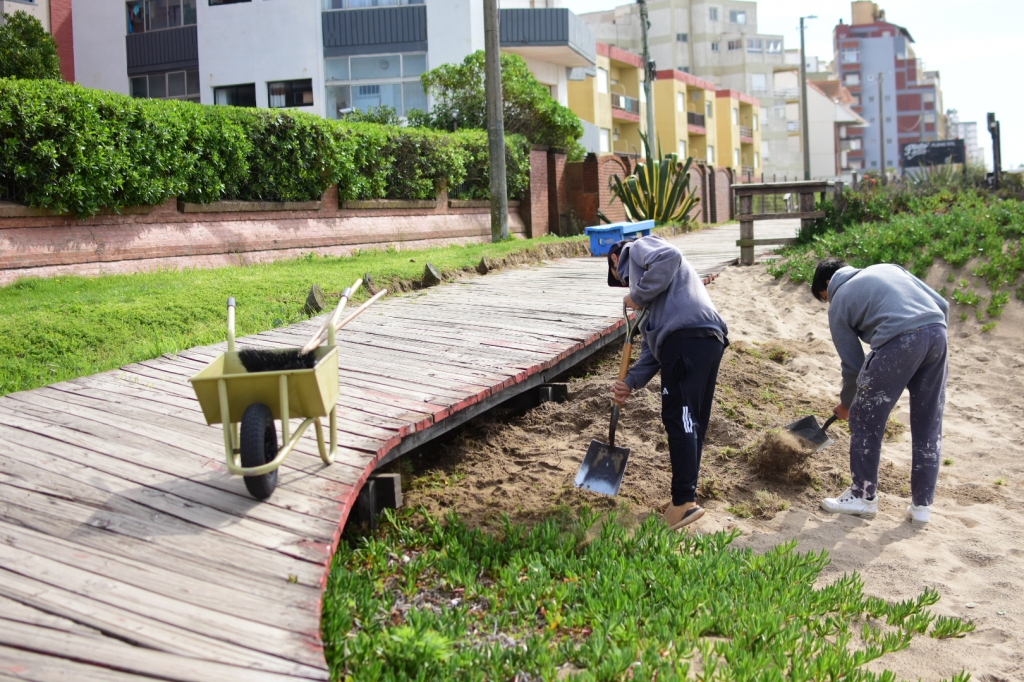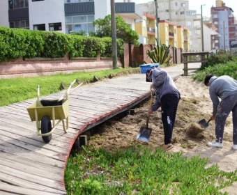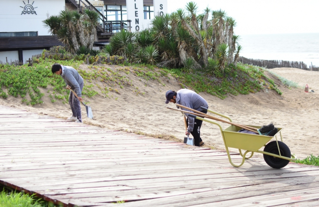 "Seguimos realizando las tareas que hacemos durante todo el año para despejar la arena que se acumula con el viento en la zona de la rambla. Arrancamos con la liberación arena en accesos a playa en la 308 y continuaremos hasta el Paseo 150. También estamos colocando nuevos bancos y cestos, pintando los miradores, bancos, puentes y barandas", explicó el Director de Playas Alejandro Fresone.