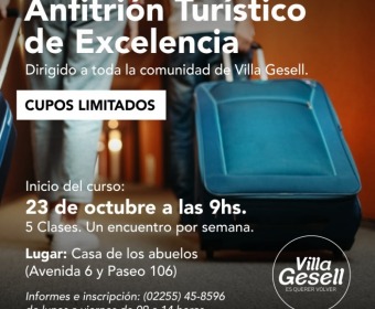 La Secretaría de Turismo de Villa Gesell, informa que se dictará el curso de “Anfitrión turístico de Excelencia”. Este curso se enmarca dentro de las acciones que desarrolla la Subdirección de Calidad Turística con el objetivo de formar a la comunidad y colaborar con el fortalecimiento de la calidad en el servicio de atención al visitante, entendiendo que el turismo es una actividad multidimensional y altamente competitiva, donde la diferencia radica en las personas directa o indirectamente involucradas en el sector.