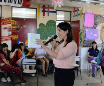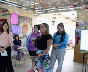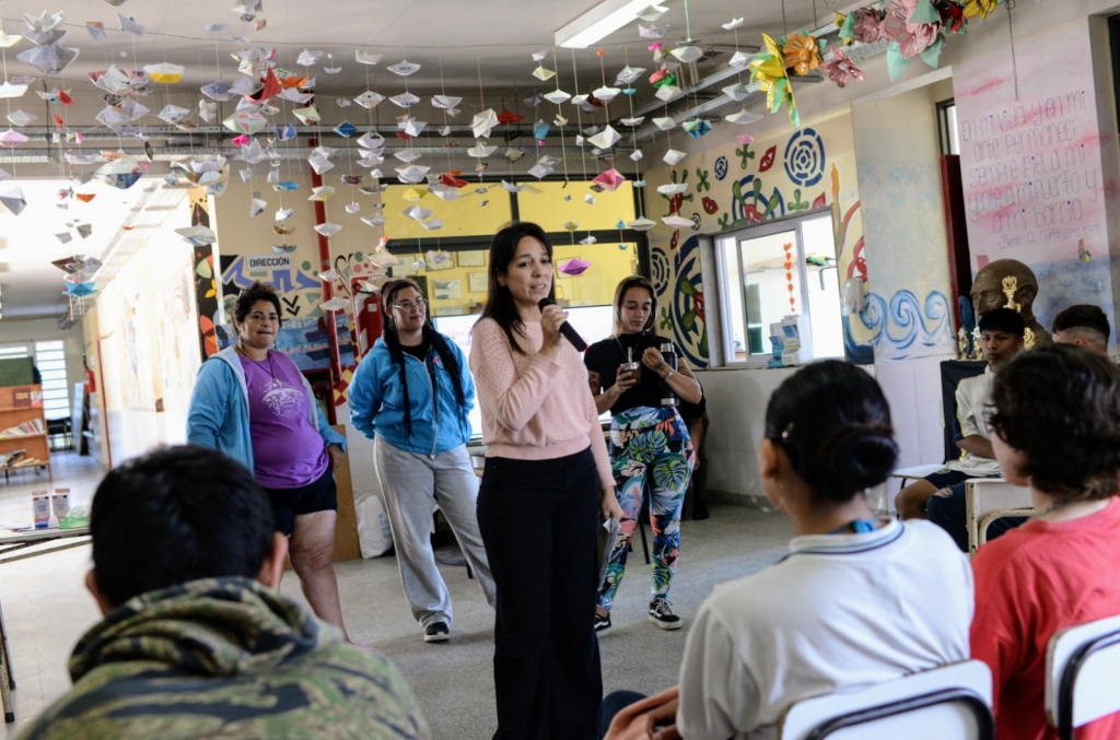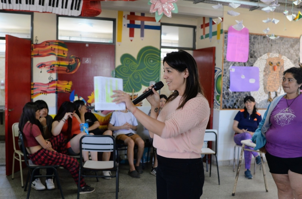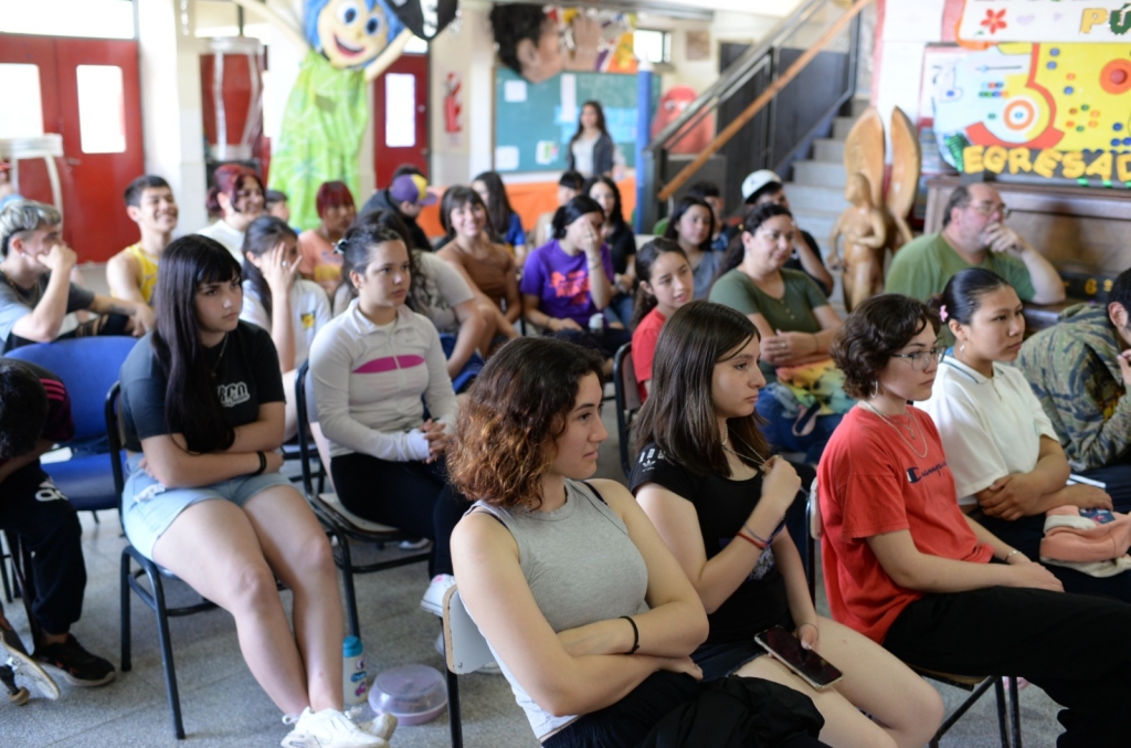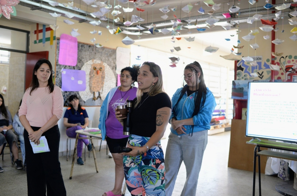 Luego de visitar la Escuela Secundaria Nº 1 y Nº 2, la secretaria de Políticas de Género y Juventudes, Barbara Perez y la directora de Juventudes, Chiara Grassi realizaron el taller en la Escuela Secundaria Nº 4 para ambos turnos.