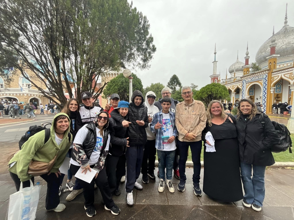 Durante la jornada, los estudiantes recibieron viandas y remeras conmemorativas y participaron de actividades recreativas y educativas en el predio de la República de los Niños. Allí, diversas dependencias provinciales ofrecieron información y propuestas interactivas. Además, los estudiantes disfrutaron de un recorrido por sitios icónicos del parque, como la legislatura, el banco, el aeropuerto y el cine, compartiendo un espacio de intercambio cultural con jóvenes de otros 132 municipios.