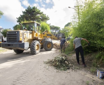 Por otro lado, también hay operarios dedicados a la limpieza manual y barrido de la ciudad. Actualmente, las tareas de barrido se desarrollan en Avenida 3 y Paseo 124 hacia el norte, mientras que la limpieza manual se lleva a cabo en distintos puntos de la ciudad: en la playa, con el aporte de un tractor, desde Pucará hasta Lindabay, en toda la zona céntrica, ingresos al bosque, zona norte de Gesell, Circunvalación desde Buenos Aires hasta Paseo 147 y Acceso Sur, entre otros sectores.