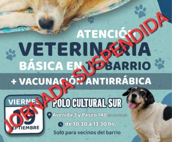 POR CUESTIONES CLIMÁTICAS, SE SUSPENDE LA JORNADA DE ZOONOSIS EN POLO CULTURAL SUR