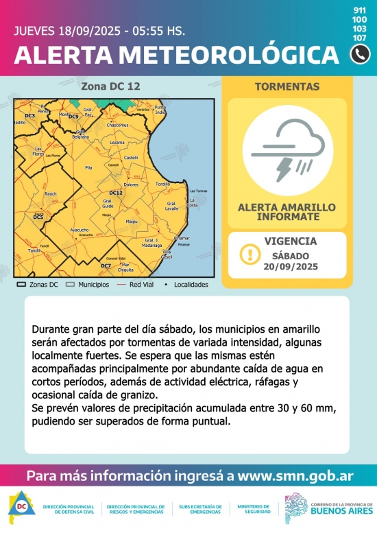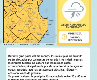 ALERTA AMARILLA PARA EL SÁBADO 20 DE SEPTIEMBRE