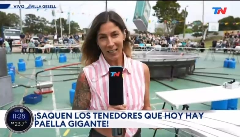 El noticiero del fin de semana, conducido por Paula García y Santiago Dorrego, realiza una cobertura especial desde Villa Gesell, mostrando los preparativos de la emblemática paella gigante geselina.