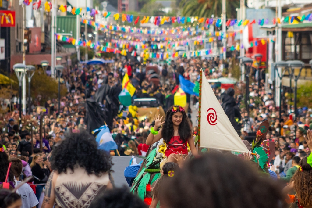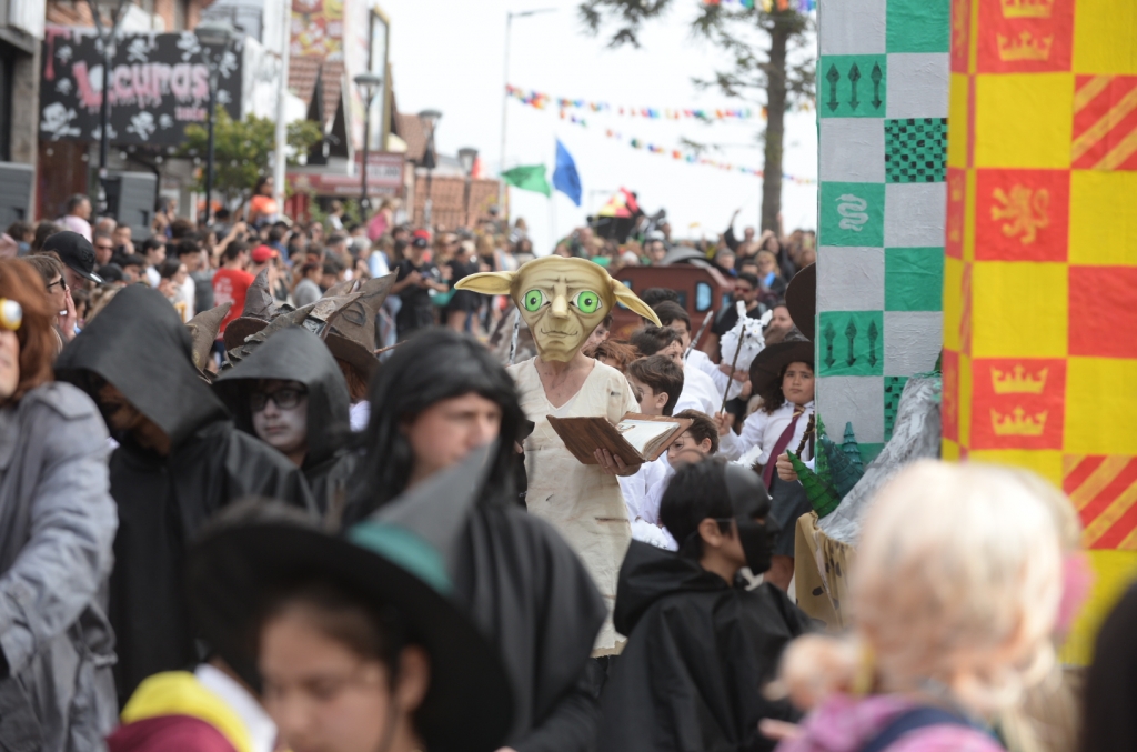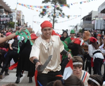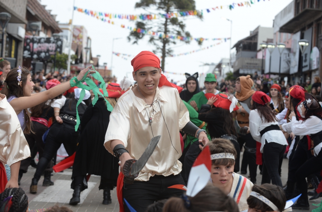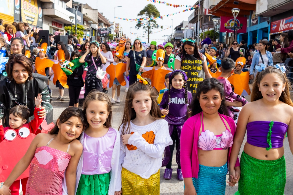 La primera delegación en recorrer la Avenida 3 fue la de la Escuela Primaria N° 3 “Marie Curie”, con su carroza inspirada en La Sirenita. El Instituto Juan Luis Vives presentó una ambientación basada en Harry Potter, mientras que el Club de Rugby y Hockey se sumó con una propuesta sobre Moana. Por su parte, IABG, Rotary Playa y los Veteranos de Malvinas desfilaron con su carroza del clásico Peter Pan.