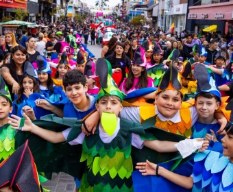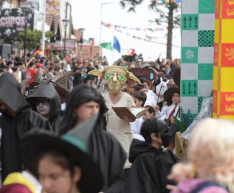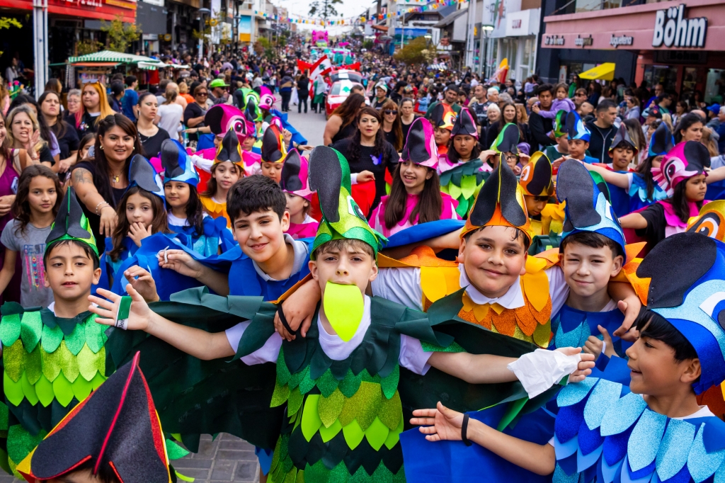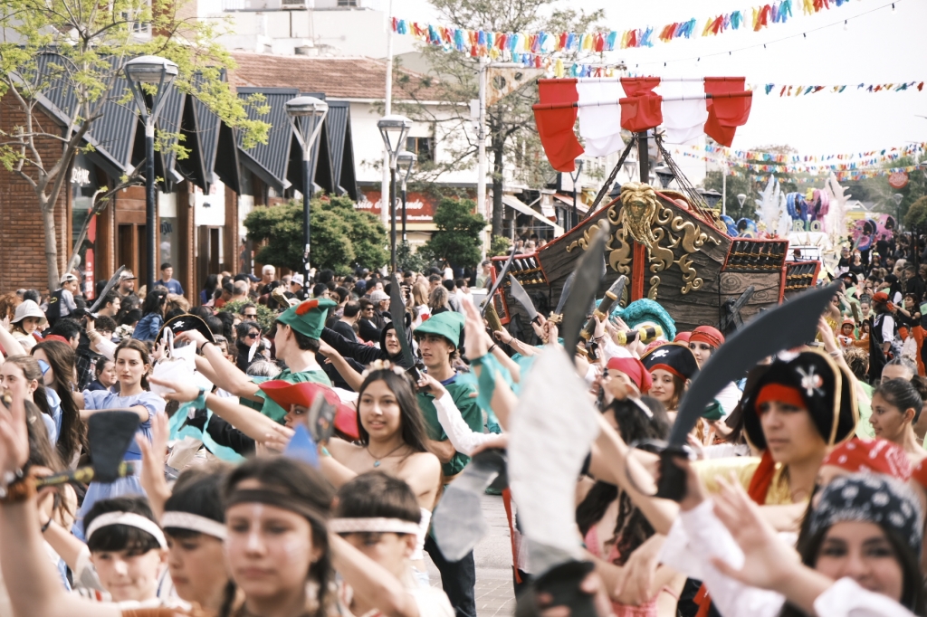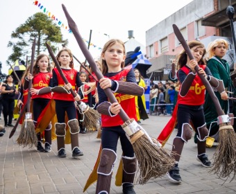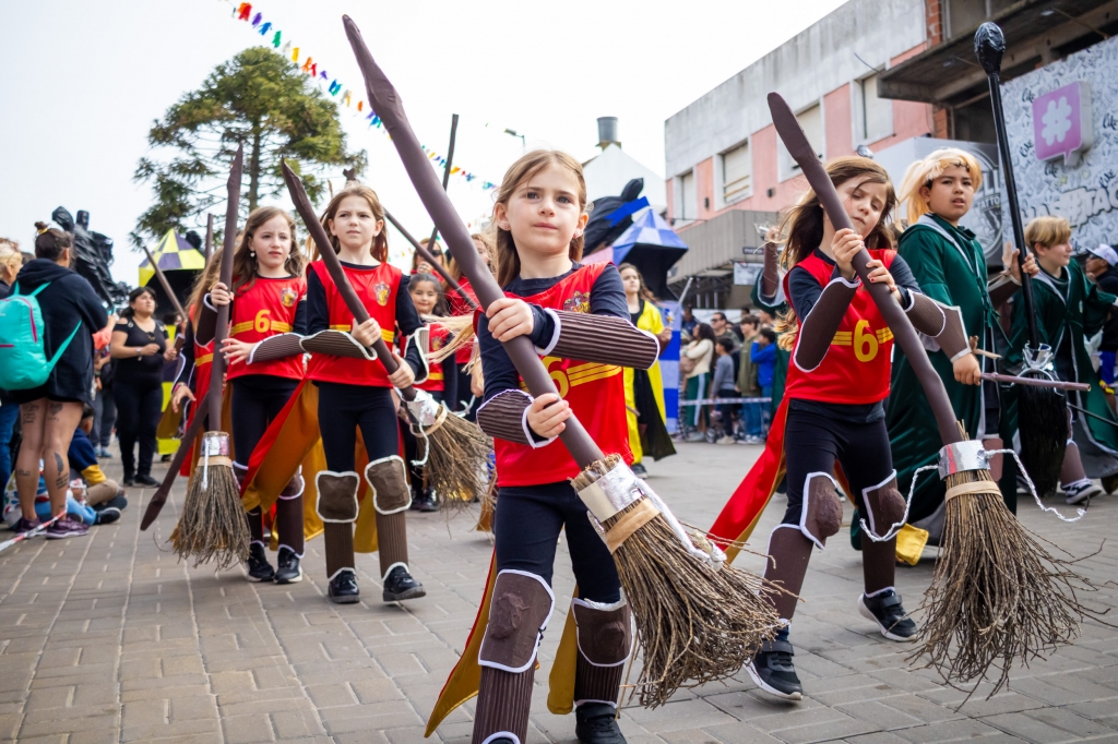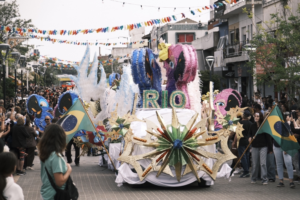 El Colegio San Martín aportó una explosión de color con su carroza de Río, y el Colegio San Patricio se destacó con Descendientes con una divertida performance.